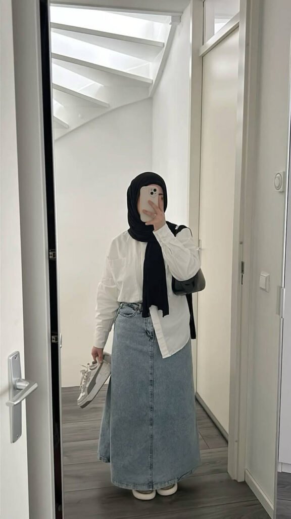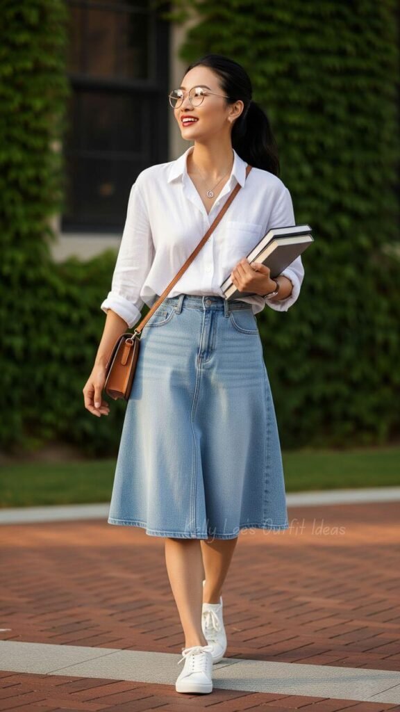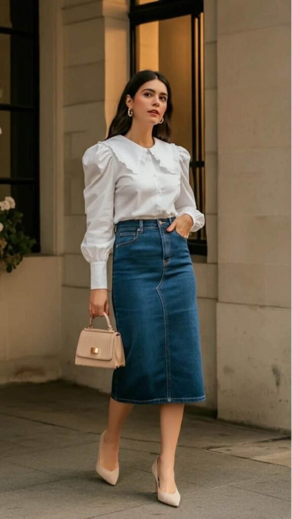 Denim Midi Skirt & Cropped Sweater